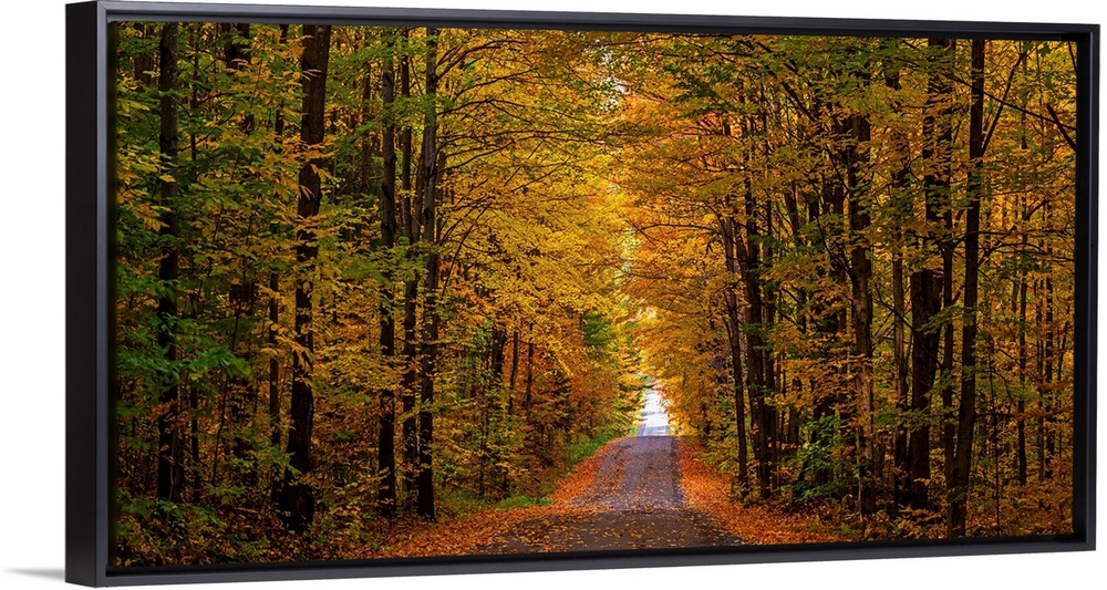 <p>Panorama of country road in autumn, Iron Hill, Quebec, Canada.</p>