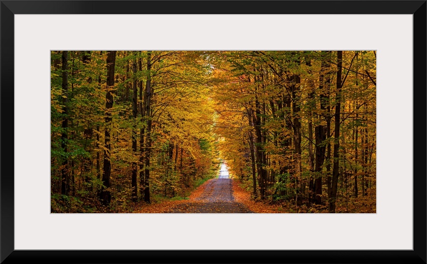 <p>Panorama of country road in autumn, Iron Hill, Quebec, Canada.</p>