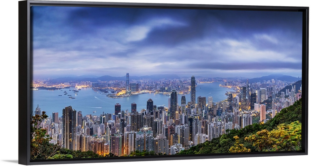 <p>Panorama of Hong Kong Harbor from above</p>