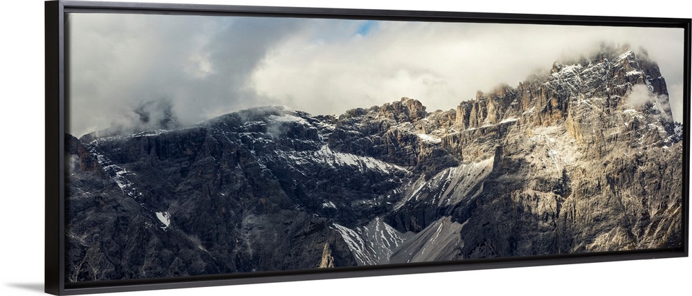 <p>Panorama of mountain range with cloud cover, Sesto, Bolzano, Italy.</p>