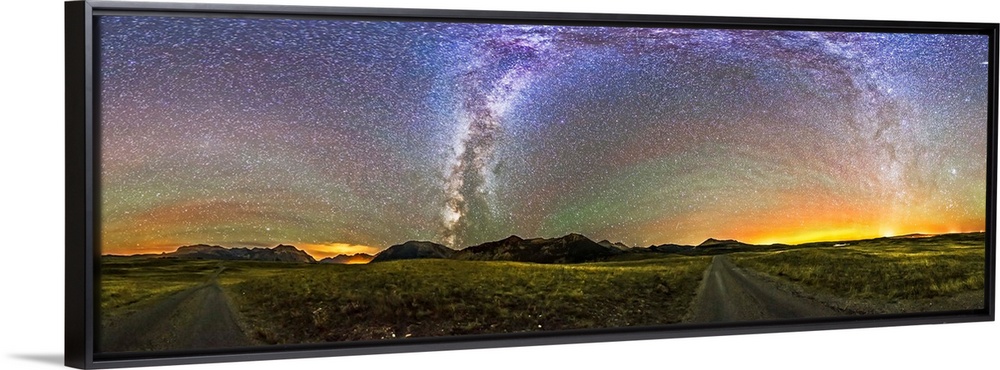 <p>September 21, 2014 - A 360 degree panorama of the Milky Way and night sky taken at the south end of the Bison Compound in Waterton Lakes National Park, Alberta, Canada. A faint aurora appears to the north (right of centre) and some airglow to the north and south. The ground is lit solely by starlight. The faint glow of Gegenschein is visible at left above the road low in the south..</p>