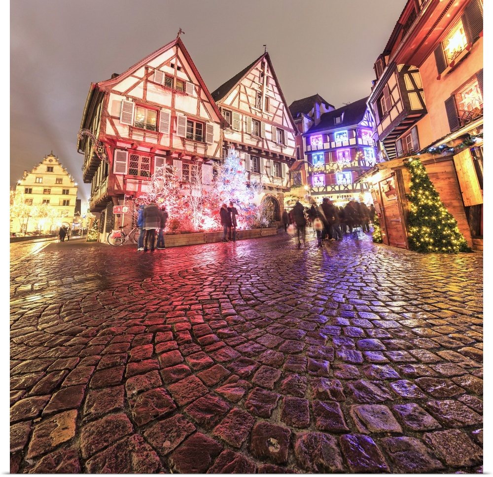 <p>Panorama of typical houses enriched by Christmas ornaments and lights at dusk, Colmar, Haut-Rhin department, Alsace, France, Europe</p>