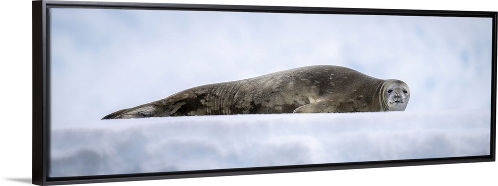 <p>Panorama of Weddell seal (leptonychotes weddellii) lying on ice, antarctica.</p>