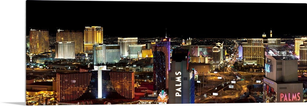 <p>Panorama view of the Las Vegas strip at night</p>