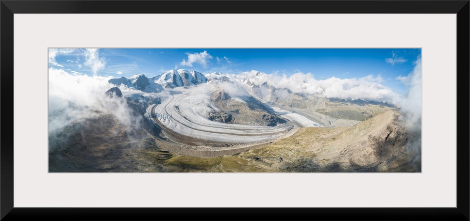 <p>Panoramic Aerial View Of The Diavolezza And Pers Glaciers, St. Moritz, Canton Of Graubunden, Engadine, Switzerland</p>