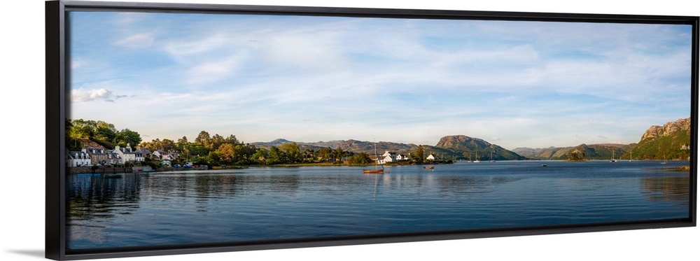 <p>Panoramic of Sun Setting Over Plockton Village and Sailboats, Loch Carron</p>