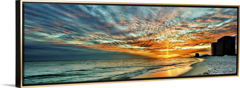 <p>A magnificent red skyscape in this panoramic sunset. Landscape taken on Navarre Beach, Florida.</p>