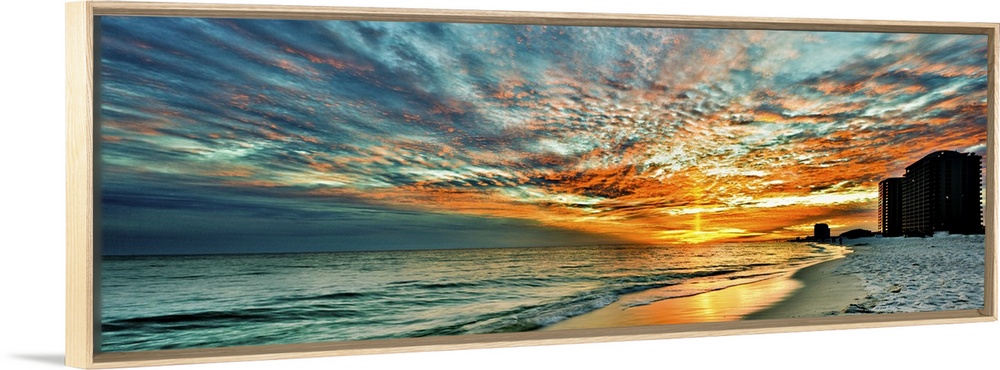 <p>A magnificent red skyscape in this panoramic sunset. Landscape taken on Navarre Beach, Florida.</p>