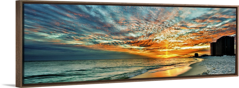 <p>A magnificent red skyscape in this panoramic sunset. Landscape taken on Navarre Beach, Florida.</p>