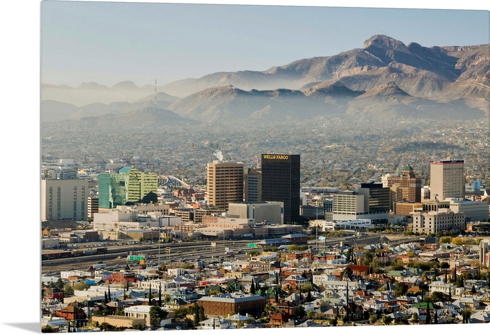 <p>Panoramic view of skyline and downtown El Paso Texas looking toward Juarez, Mexico</p>