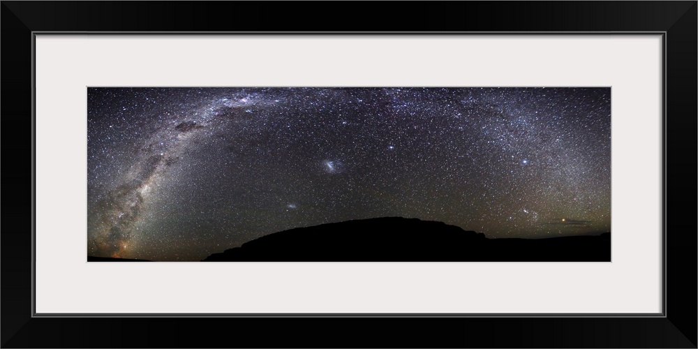 <p>The Milky Way in a panoramic photograph from Scorpius to Orion at the Somuncura Plateau in Argentina. The Magellanic Clouds can be seen inside the arch formed by our own galaxy.</p>