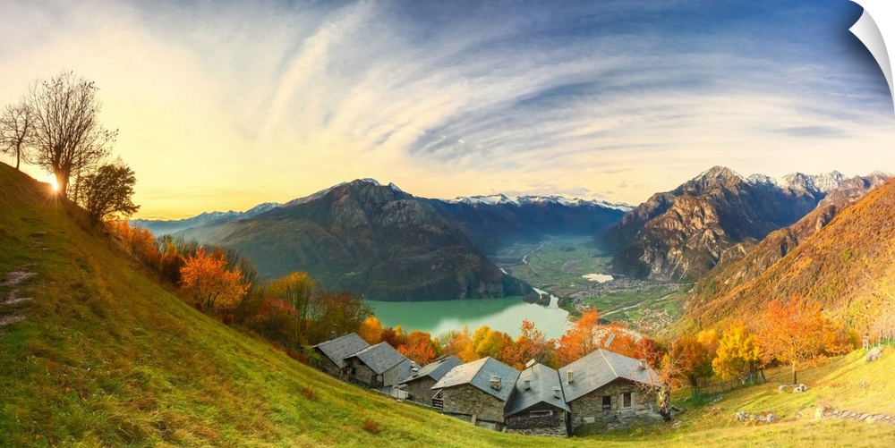 <p>Panoramic view of the old village of chalets, Valchiavenna, Valtellina, Lombardy, Italy, Europe</p>