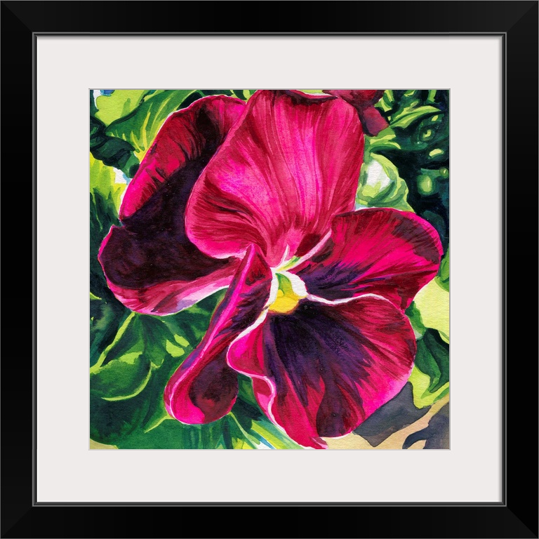 <p>Vertical watercolor painting of a vibrant pansy.</p>