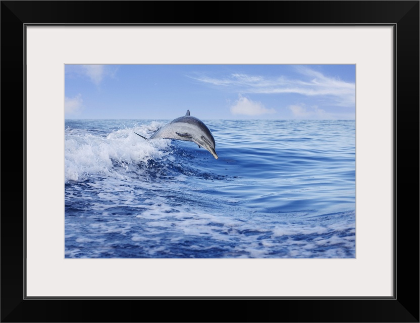 <p>Pantropical spotted dolphin (Stenella attenuata) leaping out of the Pacific Ocean, Hawaii, United States of America</p>