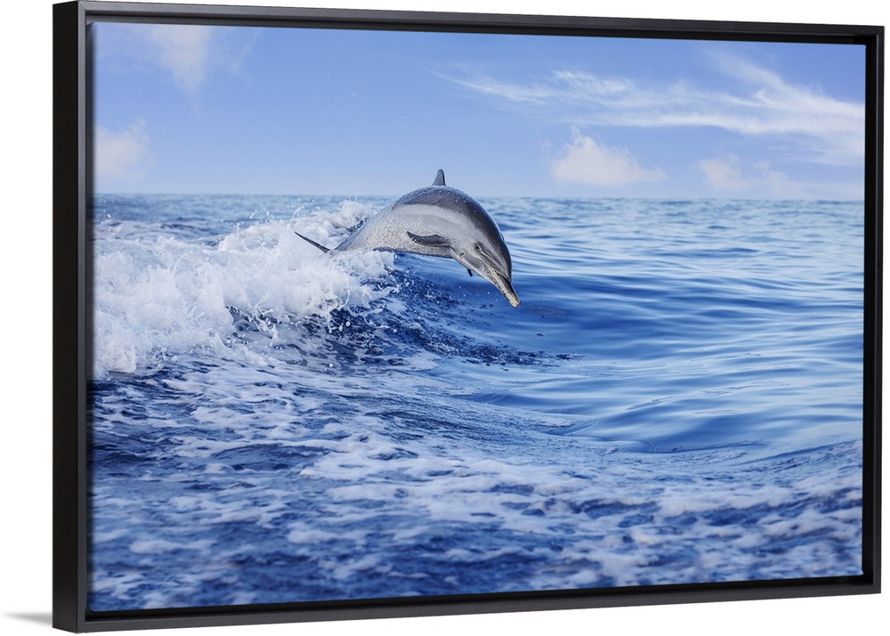 <p>Pantropical spotted dolphin (Stenella attenuata) leaping out of the Pacific Ocean, Hawaii, United States of America</p>
