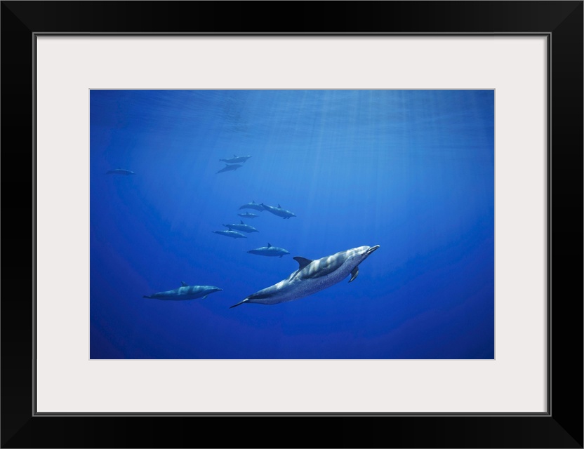 <p>Pantropical spotted dolphins (stenella attenuata) in open ocean. Hawaii, united states of America.</p>