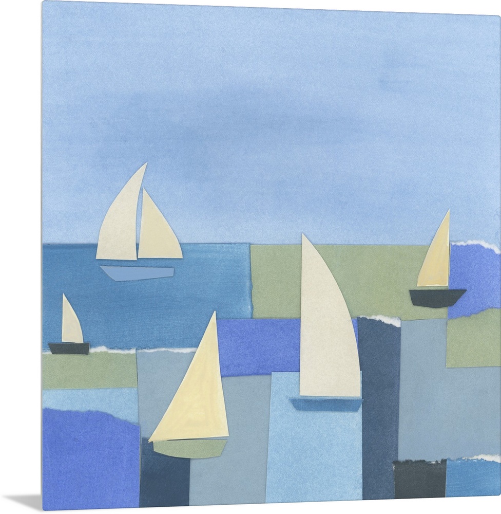 Art Coastal Blue Wall Art Decorative Art Mixed Media Art Transportation Boat June Erica Vess
