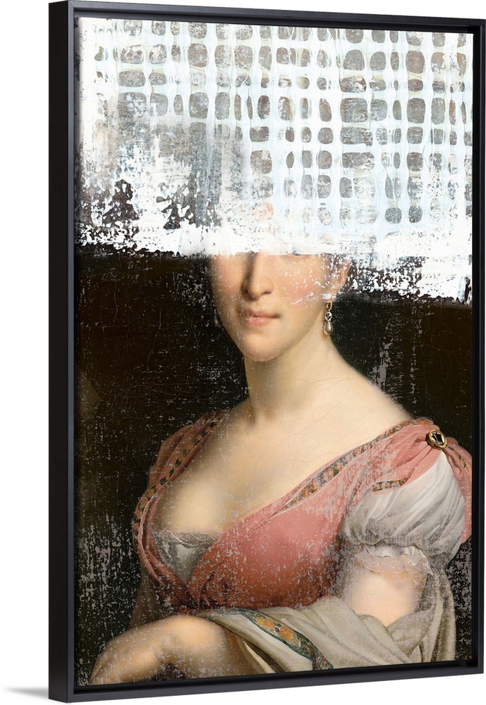 <p>A redesign of a classic portrait painting with a weaved white design overlapping the top on the image.</p>