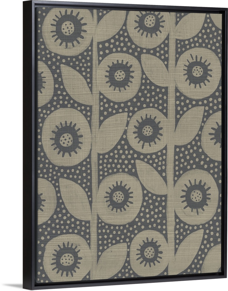 <p>Contemporary floral motif in muted gray and brown tones.</p>