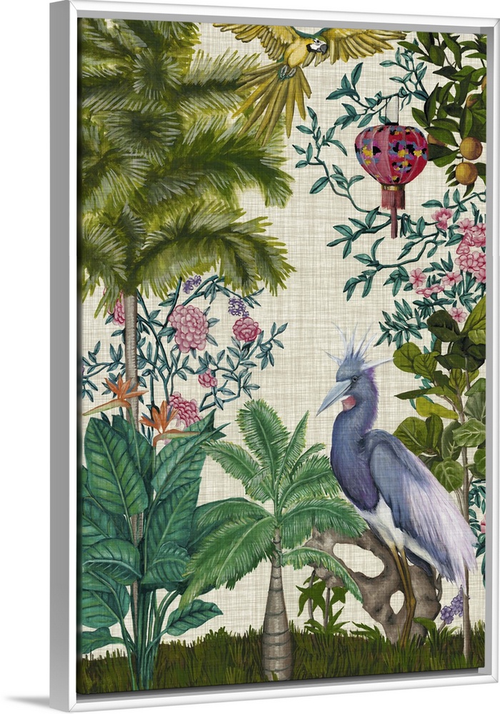 Art Bohemian Chinoiserie Decorative Art Florals Green Wall Art Naomi McCavitt Painting Tropical Wildlife Bird Tropical Birds