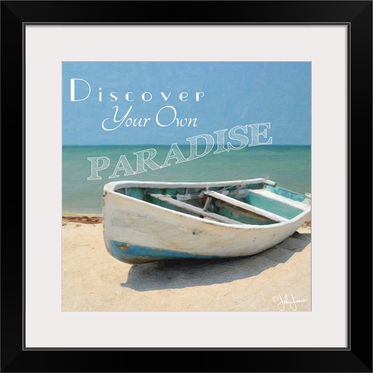 <p>Motivational text against a photograph of a row boat on a beach.</p>