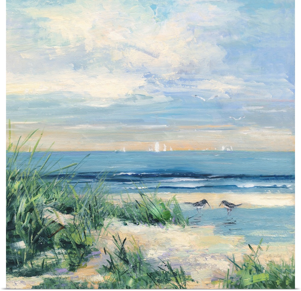 <p>Warm sand settling under your toes, crystal blue waves crashing softly in your ears, fresh ocean breezes sweeping your hair, warm sun on your skin—somehow art by Sally Swatland manages to capture what a day at the beach really feels like. Somewhere between her bright sandy whites, deep aquatic blues, and vibrant grassy greens, her seaside landscapes bring that perfect calming beach vibe into any room. Like holding a seashell to your ear to hear the ocean, looking into one of her paintings is like looking through a window to see the perfect beach scene. From the soft whisper of fresh blossoms or the bright pop of a sun-kissed shoreline, Sally Swatland’s wall art captures a piece of summer to keep all year round.</p>