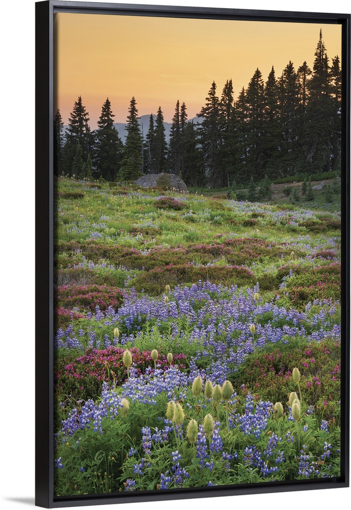 <p>Mount Rainier Paradise wildflower meadows containing a mixture of Western Anemone, Broadleaf Lupines, Pink Mountain Heather, and American Bistort. Mount Rainier National Park, Washington</p>