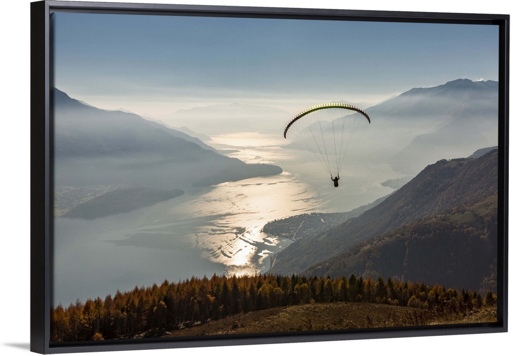 <p>Paragliding over Lake Como and the surroundings mountains. Alto Lario, Como, Lombardy, Italy, Europe.</p>