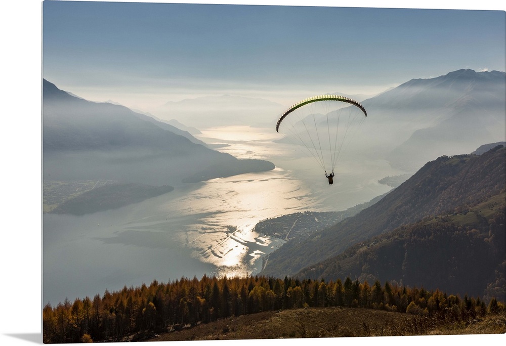 <p>Paragliding over Lake Como and the surroundings mountains. Alto Lario, Como, Lombardy, Italy, Europe.</p>