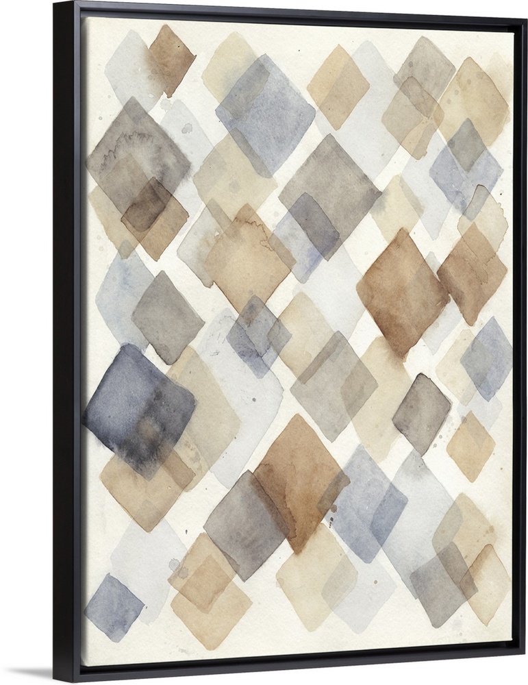 <p>Contemporary abstract painting using diamond shapes in pale watercolors.</p>