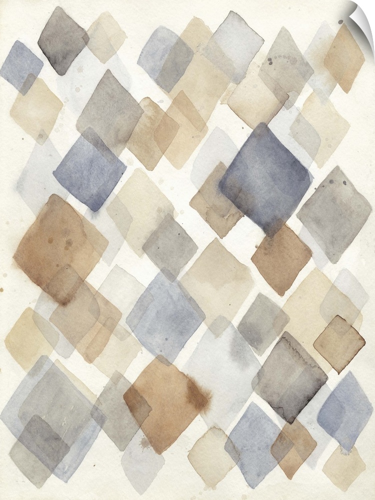 <p>Contemporary abstract painting using diamond shapes in pale watercolors.</p>