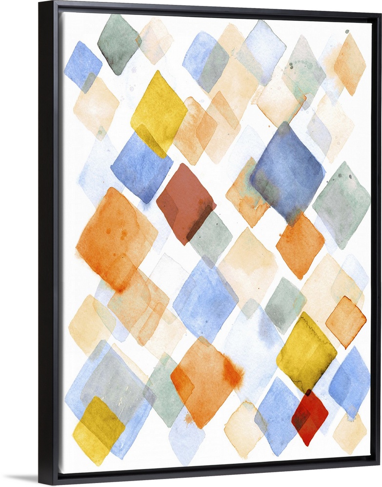 <p>Contemporary abstract painting using diamond shapes in vibrant watercolors.</p>