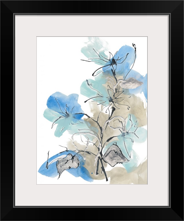 Art Blue Flowers Blue Wall Art Contemporary Art Florals Leaves Painting Chris Paschke Watercolor