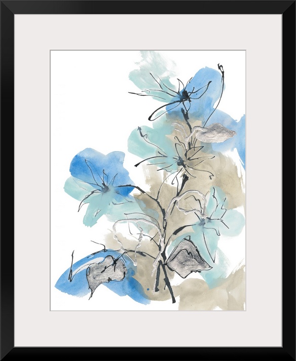 Art Blue Flowers Blue Wall Art Contemporary Art Florals Leaves Painting Chris Paschke Watercolor