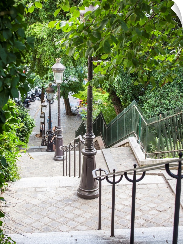 <p>Paris, France, on august 31, 2015. The street with a ladder on a slope of Montmartre.</p>
