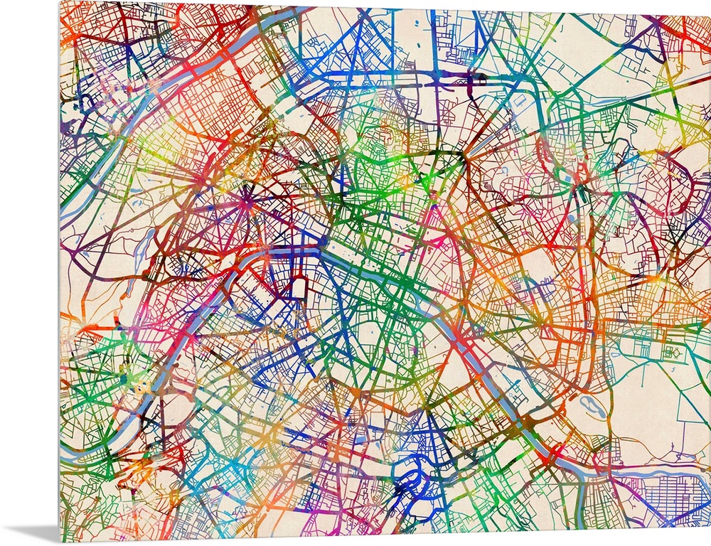 <p>A watercolor street map of Paris, France.</p>
