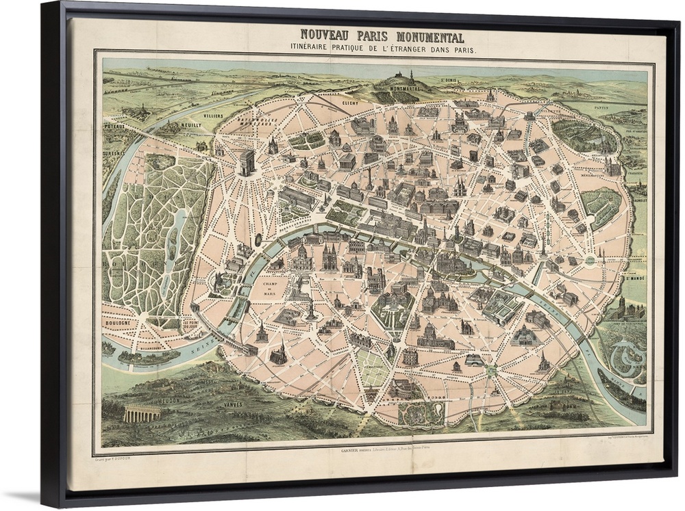 Art Graphic Art Maps Antique Maps Maps by City Paris Vintage Art