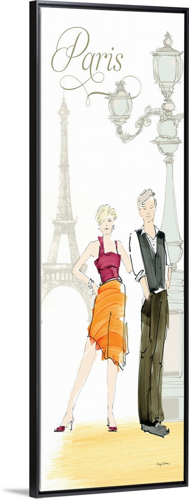 <p>Contemporary artwork of a couple, with the Eiffel Tower and a lamp post in the background.</p>