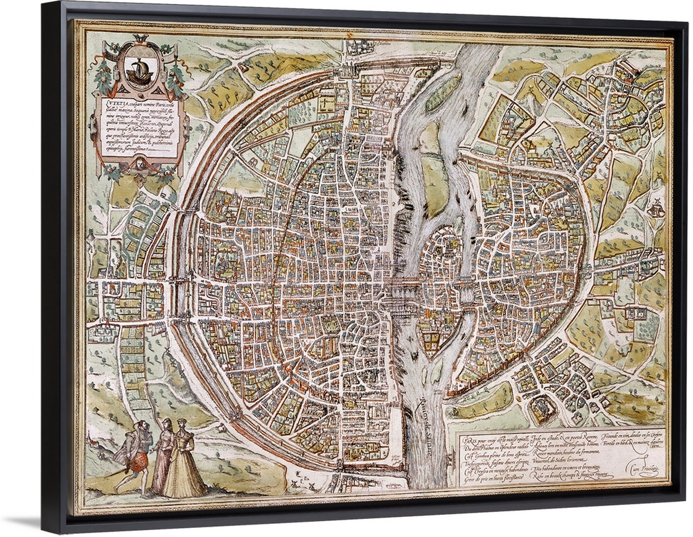 <p>Map of Paris, France, by Georg Braun from 'Civitates Orbis Terarum,' 1581.</p>
