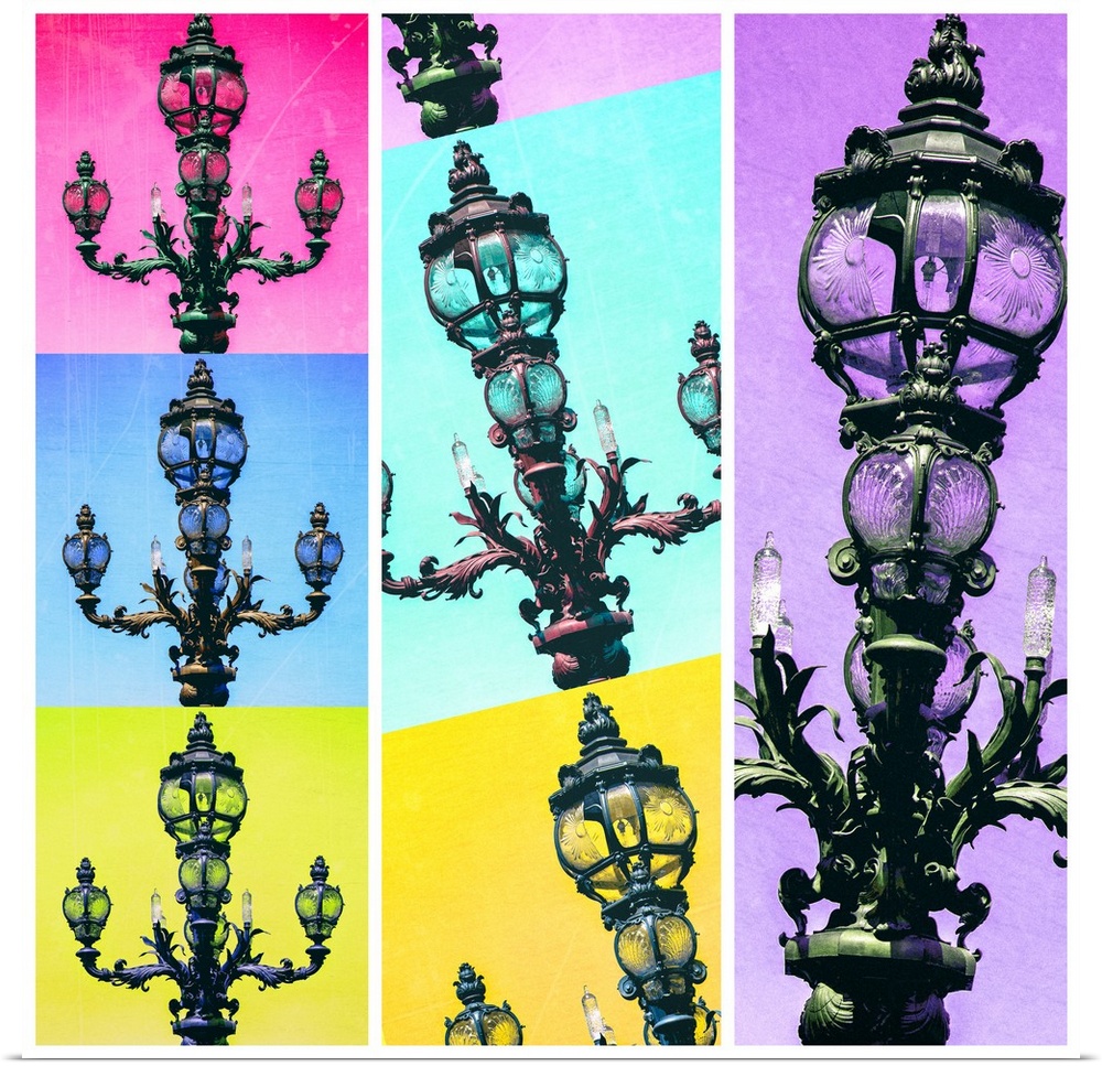 <p>Artistic photography of a Parisian lamppost in a colorful tiled pop art style.</p>
