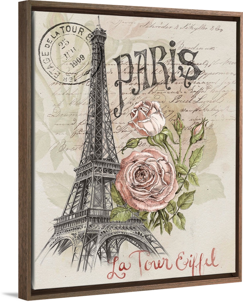 <p>A sketch of the Eiffel tower is adorned with an illustrated rose and French text throughout.</p>