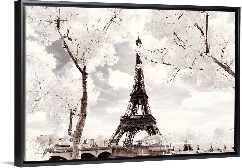 <p>It's a winter landscape in Paris with the Eiffel Tower under the snow. The trees have white leaves frosted by the cold.</p>