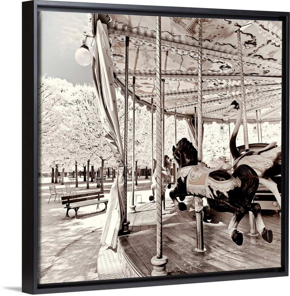 <p>It's a winter landscape with a Parisian carousel in the Tuileries Garden in Paris. The trees have white leaves frosted by the cold.</p>