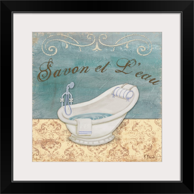 <p>Square decorative panel with an old style bathtub and textured flourishes.</p>