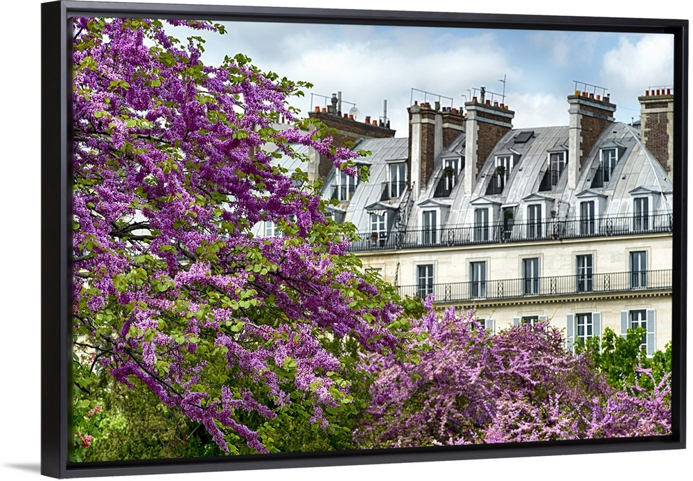 <p>Trees in full bloom frame classic French architecture on a beautiful spring day.</p>