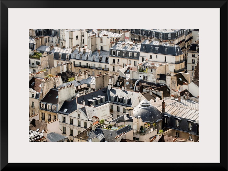<p>Aerial photograph of roof tops in Paris, France</p>