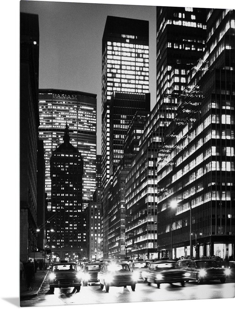 <p>A view of Park Avenue in New York City at night, including Grand Central Station, the Pan Am Building (now the MetLife Building) and the Union Carbide Building. Photograph, c1965.</p>