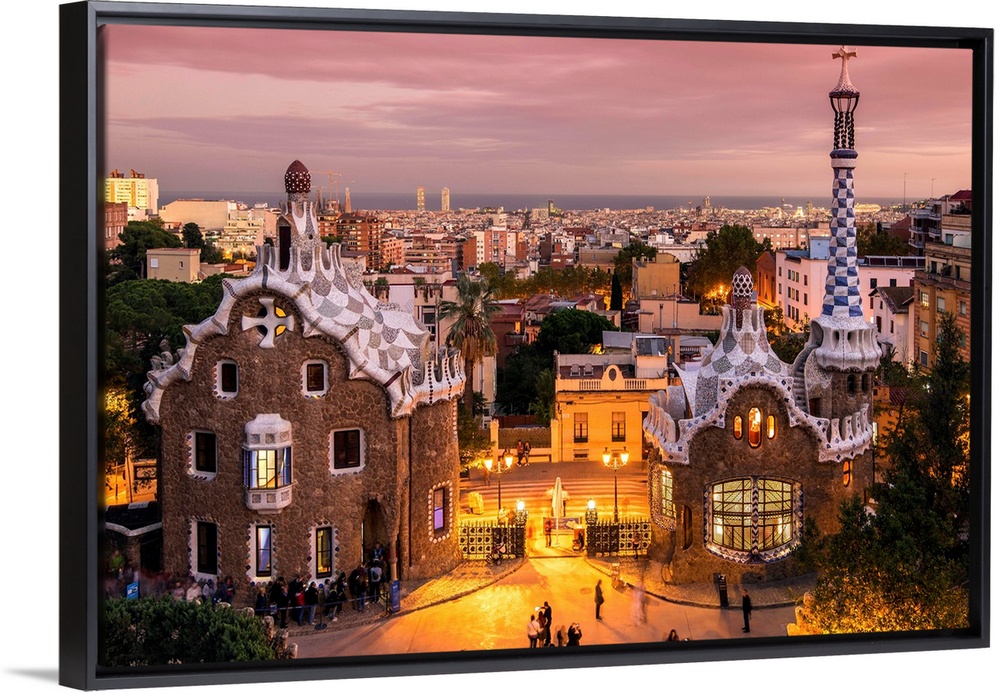 <p>Park Guell with city skyline behind at dusk, Barcelona, Catalonia, Spain.</p>