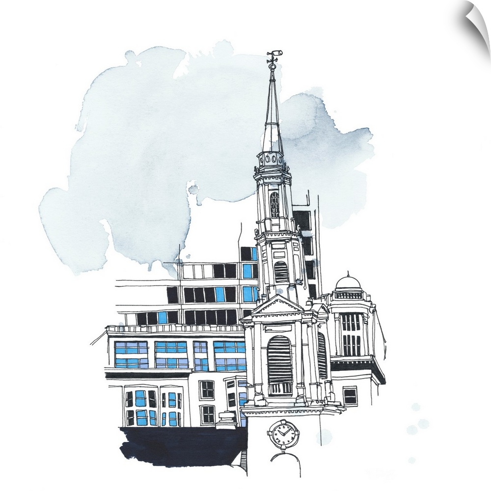 Architecture Art Blue Wall Art Contemporary Art Drawing Illustrations Massachusetts Boston