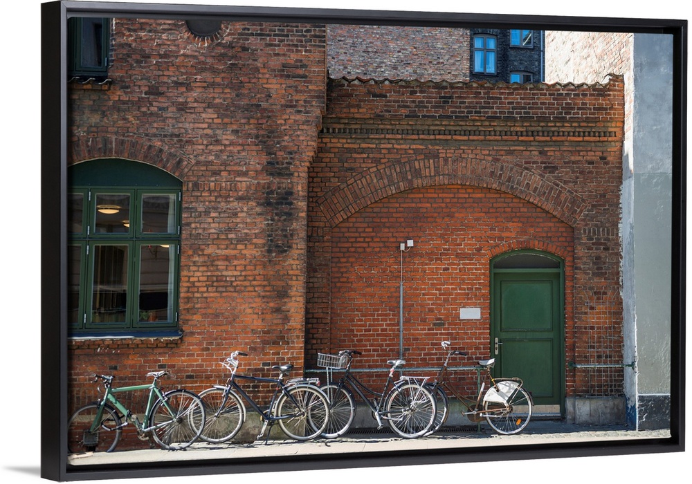 <p>Parked Bicycles Near Brick Wall Of Building Of Copenhagen, Denmark</p>